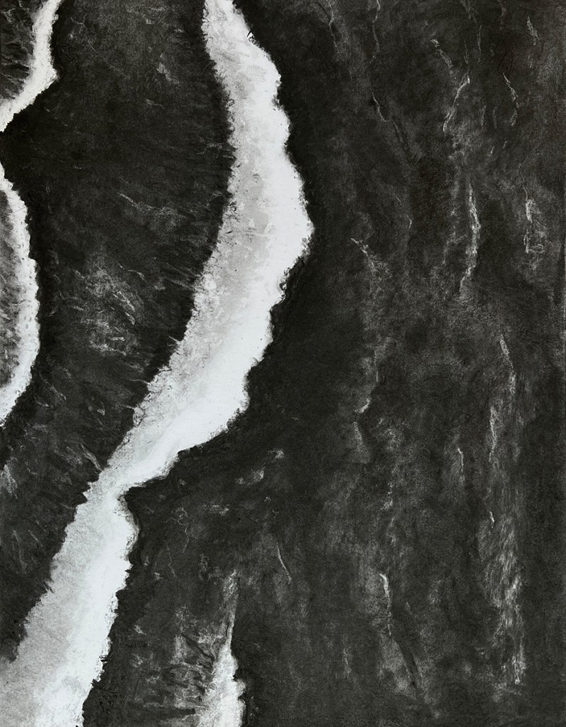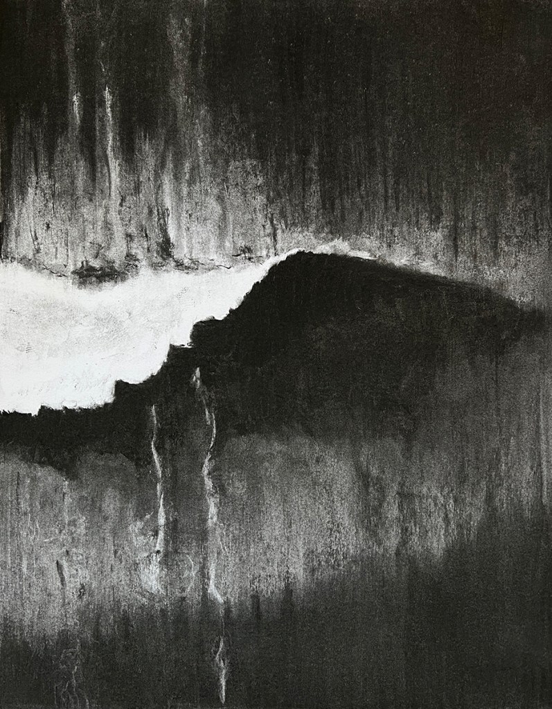 The Wave, Maud Darbois, fusain sur papier, 50 x 65 cm, 2025.